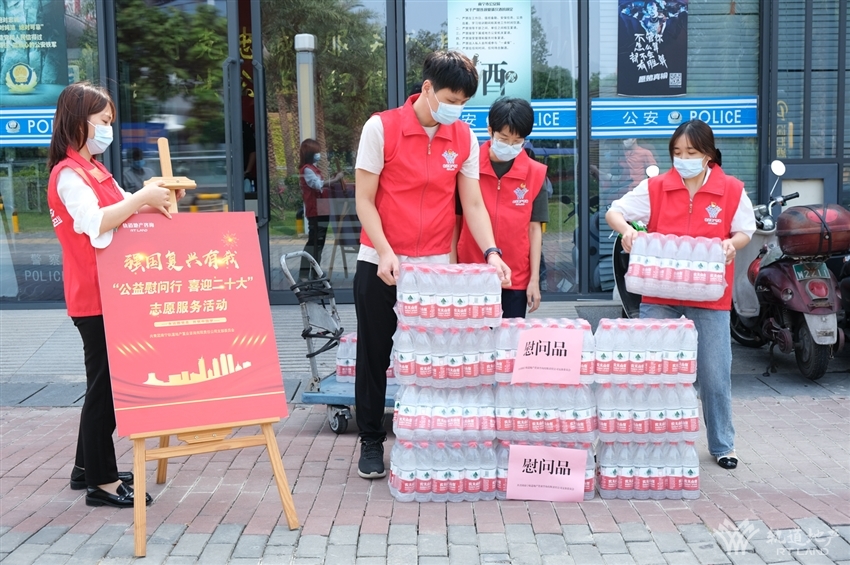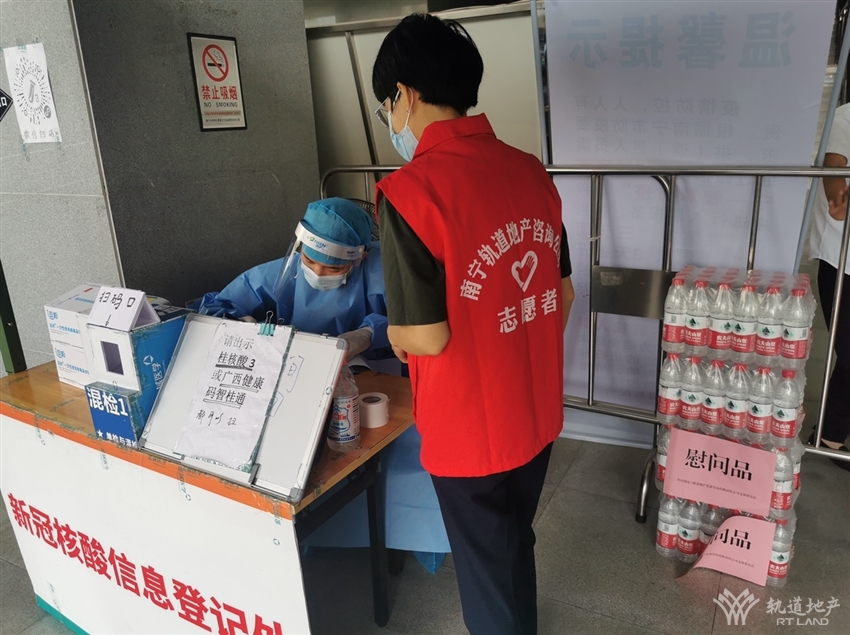 為迎接黨的二十大勝利召開,進一步弘揚“學(xué)習(xí)雷鋒、奉獻他人、提升自己”的志愿者精神,2022年9月23日,軌道地產(chǎn)咨詢公司團支部組織公司黨員代表、團員代表,積極參與南寧市新冠肺炎疫情防控指揮部志愿服務(wù)組發(fā)起的“服務(wù)兩會送清涼”公益慰問活動,在南寧青秀區(qū)鳳嶺北警務(wù)站、鳳嶺北客運站核酸檢測點開展“公益慰問行,喜迎二十大”志愿服務(wù)活動。