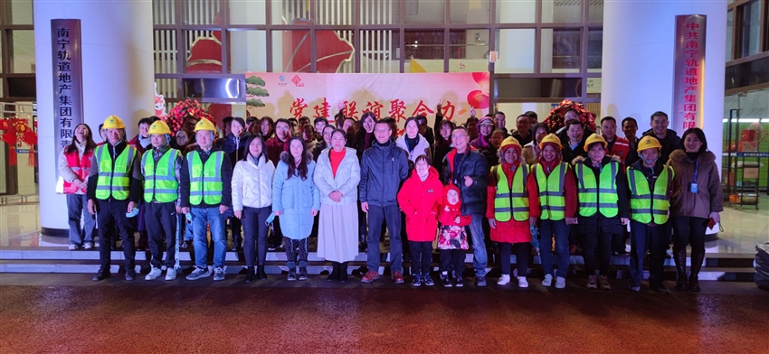 為進(jìn)一步貫徹落實(shí)黨的二十大精神,切實(shí)鑄牢中華民族共同體意識(shí),推進(jìn)中華民族共有精神家園建設(shè),傳承中華民族優(yōu)秀傳統(tǒng)文化,營(yíng)造歡樂(lè)喜慶、平安祥和的新春氛圍,2023年1月18日晚上,軌道地產(chǎn)公司第一、二、三黨支部、軌道地產(chǎn)建筑公司黨支部、軌道地產(chǎn)物業(yè)公司黨支部聯(lián)合青秀區(qū)南湖街道屯里社區(qū)在南寧國(guó)際旅游中心開(kāi)展以“黨建聯(lián)誼聚合力 民族團(tuán)結(jié)凝民心”為主題的迎新春活動(dòng)。