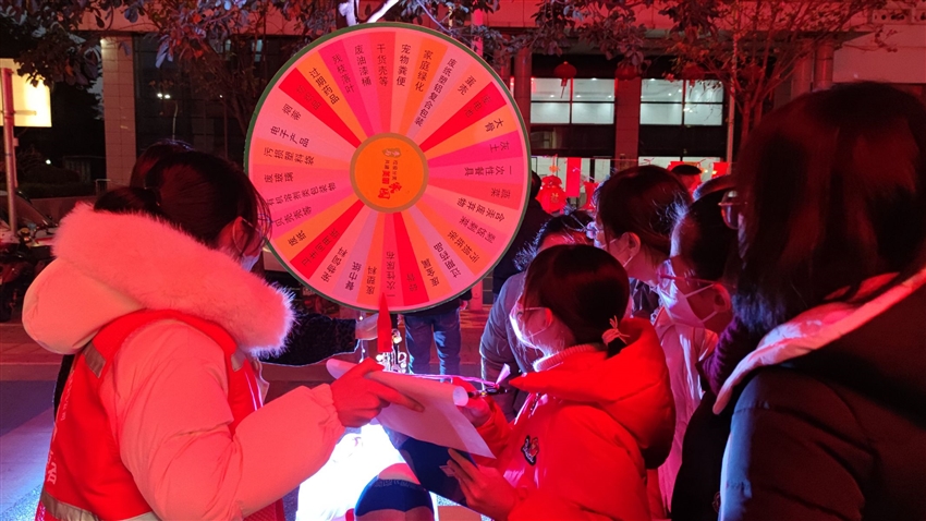 紅火的燈籠掛在枝頭,濃濃的年味已在廣場(chǎng)上蔓延,燈籠上懸掛有節(jié)日燈謎以及黨的二十大知識(shí)、民族團(tuán)結(jié)知識(shí)、廉潔知識(shí)、垃圾分類(lèi)知識(shí)、安全生產(chǎn)知識(shí)的題目。大家三五成群看謎面、猜謎語(yǔ),沉浸在猜謎解謎的樂(lè)趣中。這種寓教于樂(lè)的方式,充分調(diào)動(dòng)了大家學(xué)習(xí)的興趣,大大提高了黨員教育的實(shí)際成效。