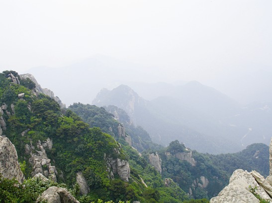 我們的行程很快,在下纜車后迅速到達(dá)南天門開始向玉皇頂進(jìn)發(fā),然后終于來(lái)到了向往已久的泰山摩崖石刻處。作為泰山的標(biāo)記之一,站在《紀(jì)泰山銘》的刻石下面,仰望這部唐玄宗的"封"山之作,頓時(shí)覺(jué)得自己十分渺小,泰山獨(dú)有的莊嚴(yán)神圣和巍峨磅礴撲面而來(lái),讓我完全拜服于泰山的獨(dú)特魅力之中。隨后我們登上了泰山之巔--玉皇頂。在玉皇頂回身俯視天地,終于在課本之外親身體會(huì)感受到杜甫"會(huì)當(dāng)凌絕頂,一覽眾山小"這句千古絕唱的韻妙之處,也真切的領(lǐng)會(huì)到"登泰山而小天下"的無(wú)與倫比的雄偉霸氣所在。